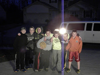 Jacob celebrated his 11th birthday with an overnight party on the Friday before his birthday. He had 6 friends over and they took over the basement. (And it smelled ~ but I loved it) He had Noah, Jack, Drew, Foster, Gordie and Josh. They played xbox, drank Mountain Dew and ate pizza, watched movies and played basketball outside.....in the snow! Yes, snow! On April 19-20. Ridiculous, I know. But the boys had a blast and that is all that counts.
